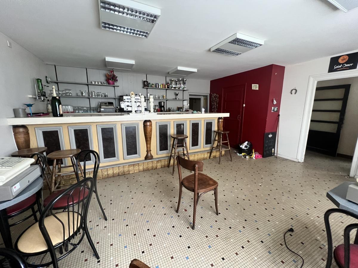 Un bar et une épicerie. Une salle à l’arrière du bar, un garage, un WC, un placard.