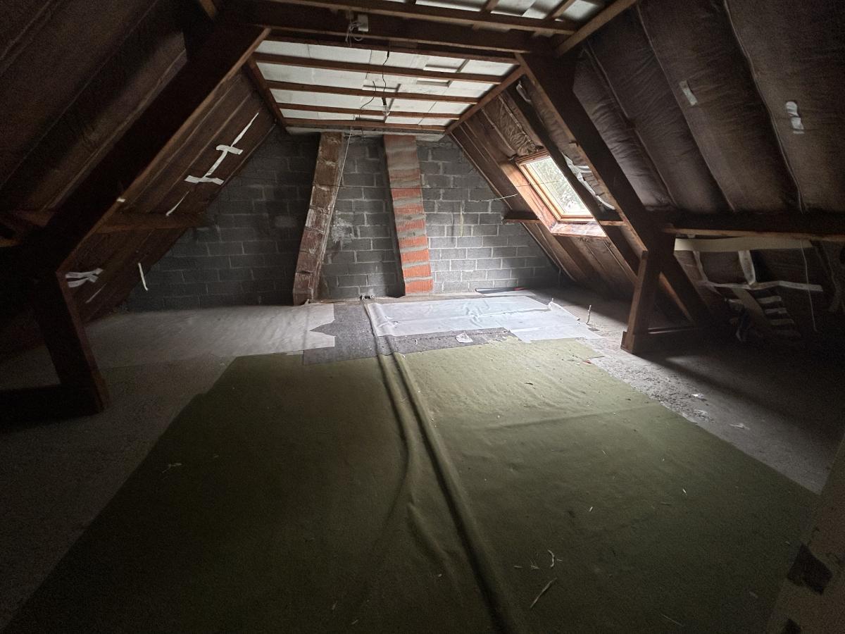 A l’étage une chambre avec un point d’eau, un grenier de 27m².