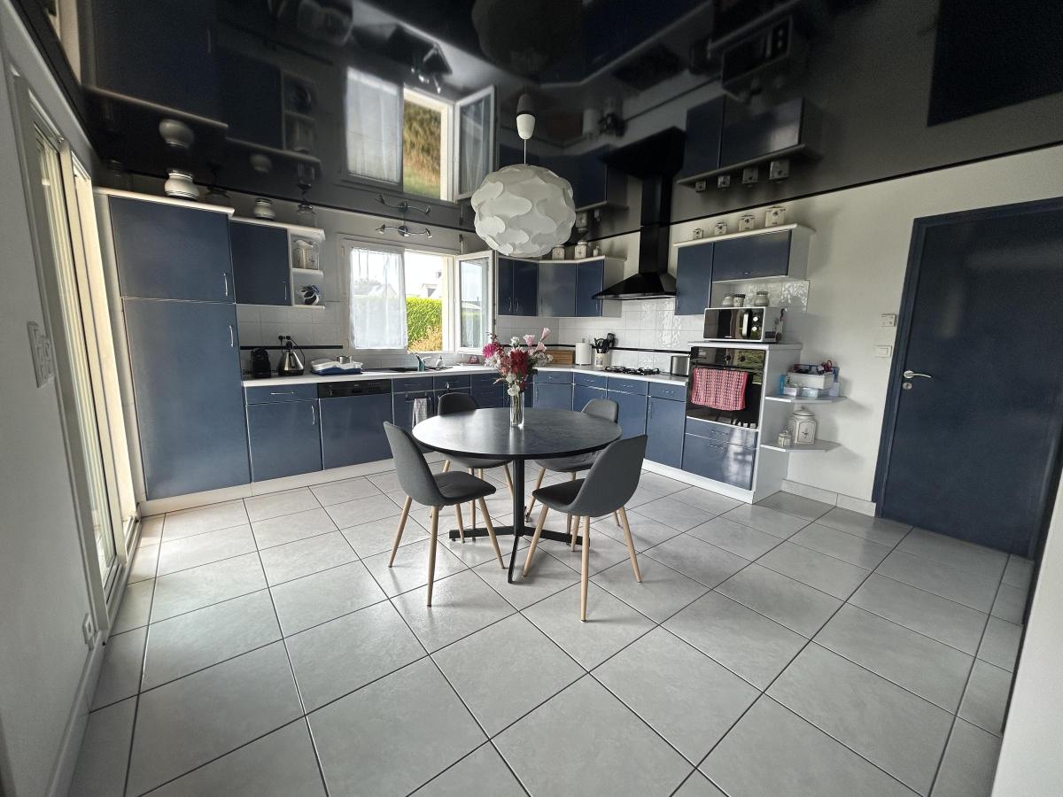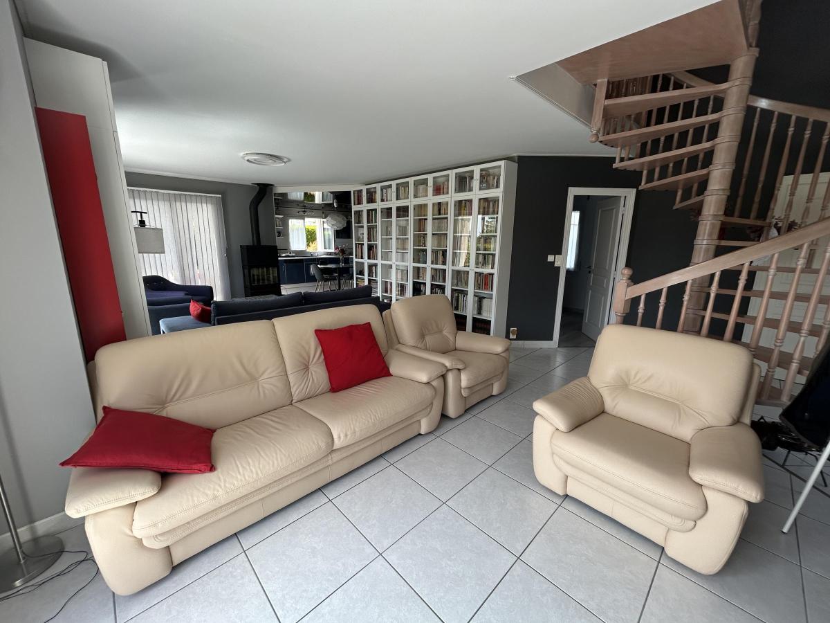Belle maison d’architecte construite en 1997, hors lotissement, elle se compose d’une entrée donnant sur une grande pièce de vie avec un salon une salle et une cuisine aménagée et équipée, une chambre, une salle d’eau et un WC. Une arrière cuisine avec buanderie et un accès au garage pouvant accueillir deux véhicules avec un grenier à l’étage.