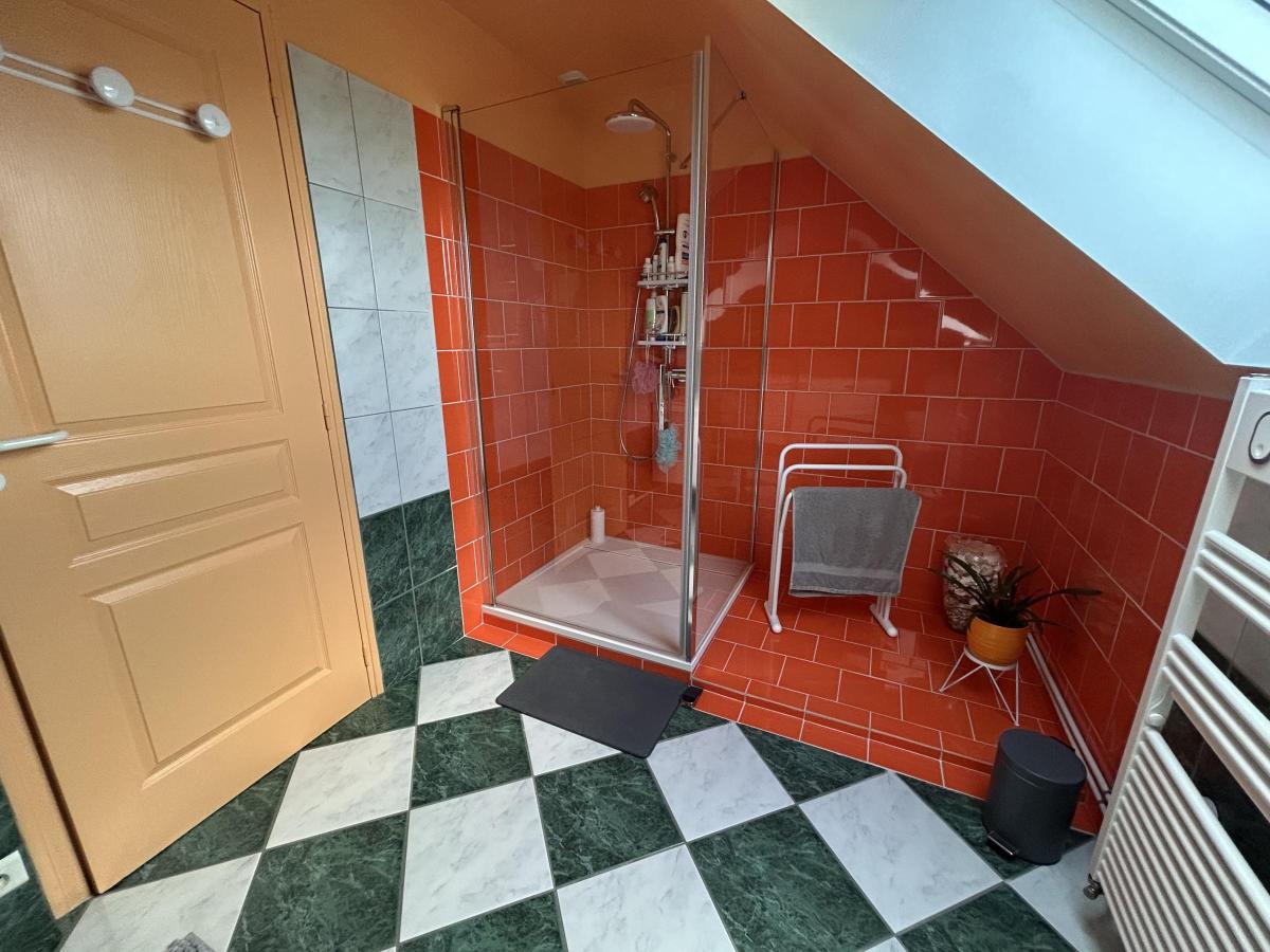 Cette maison est équipée d’une géothermie, d’un poêle à bois, d’un assainissement collectif et d’un grand jardin paysagé clos et sans vis-à-vis avec un cabanon et une serre. Une grande cour avec trois emplacements de véhicules.